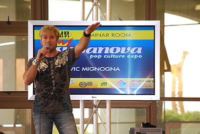 I did something of a circuit (mostly because I couldn’t get out of the stream) and then promptly escaped to the closest seminar, which actually just happened to be Supanova regular Vic Mignogna, anime voice actor extraordinaire.