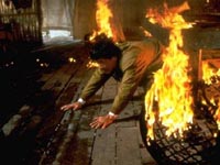 By the early 90s, the worldwide success of the Hong Kong film industry saw Beijing-born martial arts actor Jet Li become the first real threat to Jackie's number one star status. In 1993, Jackie Chan announced he was to film a sequel to his breakthrough 1978 kung fu movie, Drunken Master. This allowed him to legitimately use the Wong Fei-Hong character of that film - thus taking some shine away from Jet Li's more recent, successful reworking of this Canto folk hero in the Once Upon A Time In China series. As a sequel, Drunken Master 2 couldn't have been more different from the original. It was produced on a huge budget and filmed in mainland locations. It was also co-directed (with Chan) by legendary Shaw Bros. figure Lau Kar-Leung (Eight Diagram Pole Fighter, Tiger on the Beat). Drunken Master 2 was the most eagerly awaited Chinese film of the 1990s. What began as a dream production soon devolved into a nightmare film shoot. Jackie and Lau Kar-Leung had a stormy relationship from day one ; Lau Kar-Leung eventually leaving the film and describing his time with Chan as being like: "two tigers on one mountain". There were even fears that the movie's financial backer, the great Golden Harvest Company, was becoming destabilised by this ongoing, blighted film production. Six months overdue and wildly over budget, Drunken Master 2 finally premiered in Hong Kong during Chinese New Year of 1994. The film turned out to be a rolled gold smash hit - the highest grossing film of Chan's career. It was also a big success with Asia's film critics who deemed Drunken Master 2 as Jackie's finest hour (104 mins to be exact!). Jackie Chan was back as the undisputed king of Chinese action cinema. In the following years, the cinematic magic of DM#2 has enthused film fans the world over. From a bare bones storyline we watch as a "youthful" Wong Fei-Hong (Chan) takes on a gang of European smugglers who are looting ancient Chinese treasures under the guise of cultural exports (sounds familiar?). The China-based British bureaucrats organising this racket are backed up by Chinese gangsters who employ a seemingly endless supply of axe wielding thugs. The broad comedy of DM#2 revolves around the domestic problems facing Wong, as his father, a respected herbalist, strictly forbids him to learn the drunken kung fu style of fighting. Famous Cantonese actor, Ti Lung (The Magic Blade, A Better Tomorrow, A Killer's Blues), plays the dour father whose many warnings to his son of: "not to arouse trouble", usually signposts a megadose of strife on the way. HK actor / singer Anita Mui (Rumble in the Bronx, Mr Canton and Lady Rose) has the part of Fei-Hong's shrewd mother, a point which Chinese audiences find highly amusing as Mui is ten years younger than Chan. Also appearing in DM#2 is Lau Kar-Leung who has a small but pivotal role as the Militia leader Fu Wen-Chi. It's a pity that both directors couldn't work together because, ultimately, DM#2 is a first class example of how good these film-makers can be. In the superbly choreographed tea house brawl, we are privileged to see a fascinating blend of old school and new school martial arts film-making. Chan's creative use of "any prop available" is complemented by Lau Kar-Leung's very specific axe and pole fight choreography. When carefully edited together these individual scenes of mayhem create a martial arts mosaic which burns into one's memory. The tea house melee also changes the tone of DM#2, as it becomes much more serious, eventually leading to a violent finale in a Canton foundry. I won't give much away here, but this tremendous sequence is easily the best fight / action work Jackie Chan has ever achieved (Lau Kar-Leung wasn't involved in any of this filming). In actor Ken Lo, Chan found a near perfect martial arts foil and damm near screen equal. Jackie freely admits this foundry fight is the toughest he had ever filmed. It stands as the high point of Chan's career, and he seems content to see it as just that - because he has never seriously attempted to top this blistering passage of sublime action cinema. This is the original, uncut version which first played in Melbourne's Capitol Theatre in February '94. It's nearly impossible to find this version on DVD or VCD - with English subtitles. Two years' ago, DM#2 was released theatrically in America in an edited and dubbed form under the title: The Legend of the Drunken Master. In this particular case, I have no hesitation in saying the original DM#2 is the best! - JOHN SNADDEN This is the quintessential Jackie Chan