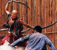 Screened on 23 September 2001 & 25 May 2003: Produced and released in 1995, The Blade is seen by many HK buffs and cineastes as Tsui Hark's best film and, for a martial arts movie, is the antithesis of his earlier Once Upon a Time in China series. You won't find do-gooding Wong Fei-Hongs or righteous seeking no-shadow kicks - the realm of The Blade is a very unheroic one. The Blade is down and dirty, muddy and bloody, ultra-realistic action film-making. Initially, sold as a remake of Chang Cheh's 1967 classic The One Armed Swordsman, it actually covers much more ground and in true Hark style is a completely new take on an old genre. On its premiere, Hark described The Blade as being the martial arts movie he had always wanted to make. This is a dark, dangerous film, brutally and continually violent with a psychological edge that is uncommon in the Chinese martial arts cinema. Hark's use of color and image is at times ravishing - there are sequences in this film that mark some of this director's finest screen work. The Blade stars newcomer Zhao Wen (the Buddhist monk in Green Snake) as Ting On, an orphan who has been raised by the owner of a foundry and trained in the trade of sword making. His best friend is Iron Head played by Moses Chan (the serial killer husband from Intruder), together they follow the strict regime of the foundry and enjoy the occasional commercial and carnal forays into the outside world. Hark's view of this mythical martial arts world is at its misanthropic best (or worst) as we witness in the opening minutes the torture of a starving dog and the cowardly killing of a priest. Survival of the fittest and most treacherous is the way of life.....fear is omnipresent. There is a linking narration from Ling (Song Lei), the spoilt daughter of the foundry owner, who sexually teases and taunts On and Iron Head. Just as you begin to wonder what exactly is Hark up to, an emotionally shattering passage of film explodes onto the screen when On is told the real story about his father and how he had died. A superb montage sequence involving flashbacks and sword fights in torrential rain give the film its much needed dramatic core as Ting On sets out to hunt down his father's murderer - a tattooed killer named the flying dragon. The latter played by Hung Yan-Yan (Clubfoot from Once Upon a Time in China 3), whose every move and word fills the screen with pure evil - an extraordinary performance! After leaving the foundry, On is captured by bandits who mutilate him and leave him for dead - bad move! The Blade's main subplot has Iron Head and Ling searching for Ting On. Maybe it's the dusty, western-style landscape (it was filmed in China) but this section of the movie always reminds me of John Ford's The Searchers, although very different characters, Ling and Iron Head's need to find On is driven more by guilt than anything heroic. Thankfully, Tsui Hark does allow some refreshingly natural characters into the story. Blackhead, an illiterate farm girl, has a tenacious grip on life but holds no illusions as to how harsh or unfair life can be. The petulant Ling receives some quite shocking, but much needed, life lessons from a village prostitute played by Valerie Chow - in another first-rate performance from this very underrated actress. Hark and his co-writers also hone in on the theme of personal identity and how important it is to peoples' lives. On the film's release in late '95, HK audiences would have been extremely mindful of this notion with the looming '97 handover to China. If you caught Hark's Time and Tide at the Melb. Film Festival and liked its over-the-top action content - then prepare yourself to be blown away by the fight sequences in The Blade. They are so well choreographed and edited that the close quarters savagery of these fight scenes can be genuinely frightening. Such a response will, unfortunately, show how slick and empty Hark's more recent work has become (and I include Time and Tide in that). I never thought Tsui Hark would ever try and top the pole fight sequence between Jet Li and Donnie Yen which he created for Once Upon a Time in China 2 - but he has, with the final bout between On and Lung, the tattooed killer. Of all the martial arts fight sequences I've seen on film (video, TV, DVD etc...) this particular one still ranks, far and away, as the best. Hark closes the film on an unexpected, humanist note about life and love - his cinematic genius almost tangible. - JOHN SNADDEN The Blade ranks as one of the