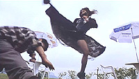 Screened at Golden Shadows on 28 October 2001: Wonder 7 is a magnificent comic book of a film. Star appeal, outstanding action sequences and a turbo charged storyline combine to create a totally entertaining pulp movie experience. The title refers to a group of highly trained mainland Chinese crime fighters stationed in Hong Kong. Each member has a specialised combat ability which has been honed to the finest degree. Real life Olympic gymnast turned actor, Li Ning, is the unit's operational leader, Yip Fei, a martial arts expert and dab hand with a knife. Porky Kent Cheng (the butcher from Once Upon a Time in China) is Nanny, the physical and spiritual head of the group. Hilary Tsui (the girlfriend from Mad Stylist) is Tiny, a human dynamo and dexterous archer. Cantopop star Andy Hui is tagged Superman, and Hung Yan-Yan (the killer from The Blade) takes the role of Monk, a Shaolin priest turned crime buster. The skills of the seven are displayed in all their glory during the film's opening minutes as they arrest a gang of armed robbers on a crime spree in central Hong Kong. The seven are given an assignment to stop a corrupt Chinese General from accessing his ill-gotten millions via a Swiss bank account. The plan is to locate a computer card which will open the account. Ying (Michelle Yeoh) and Tsun (Ho Chin) are a shadowy couple from America who are in Hong Kong to transfer this card to General Yeung. Tsun is a classic HK movie villain with a maniacal laugh and a penchant for shooting his way to the top of the criminal tree ; whereas, Ying epitomises criminal chic with a price tag lethal streak. Yeoh has never looked better on screen, in Wonder 7 the camera loves her flowing dresses, her long ebony hair shining in the moonlight (the wind machine was working overtime in this film) and her martial arts sequences that have a distinct eroticism to them. As star vehicles go, Wonder 7 is a stunning screen accomplishment for La Belle Michelle. Ying and Fei meet early in the movie and the sparks fly as they play a deadly game of cat and mouse, tinged with a blossoming romance. Yes! Again, only in HK movies!! With top Hong Kong screenwriters Charcoal Tan (Dragon Inn, The Assassin) and Elsa Tang (Swordsman 2, The Fire Dragon), director Ching Siu-Tung (A Chinese Ghost Story, Terracotta Warrior) has shaped a credible script with enough twists and turns to keep any audience on its toes. In keeping with the cartoon style, Ching also has fun at the expense of the Chinese army with Tsui Kam-Kong's role as Coach ("Bold Head"), Fei's mentor. By the film's end Tsun has become an absolute wacko and is depicted as being a gruesome cross between Scarface's Tony Montana and the sleaziest game show host you could imagine. Back in the early 90s, when HK directors had budgets to burn, Ching Siu-Tung pulled out all stops with the action content of Wonder 7. With veteran lensmen Poon Hang-Sang (Peking Opera Blues, Centre Stage) and Peter Ngor (Full Contact, C'est La Vie Mon Cheri), Ching creates visuals which will lodge in your brain - a sniper attack in the Hong Kong Coliseum has the screen bathed in a deep red and lets the action unfold against the backdrop of a huge Chinese flag. A shootout in a hospital has some truly amazing moments, watch for the "duelling wheelchairs". The explicit violence in this sequence is leavened by some unintentionally hilarious subtitling, ie. Yeoh's "unfortunate encounter" and Hilary Tsui's "he's recovered". Most of these scenes are supported by the very enjoyable Wonder 7 theme, penned by composing duo Lo Ta-Yu and Fabio Carli (A Moment of Romance). The many night scenes are a standout and look tremendous, whether detailing action or creating atmosphere. Top line Cantonese directors and cinematographers often infuse the canvas of the night with a hyper surrealism that is uniquely Chinese. (A style pioneered by the set-bound Shaw Bros. martial arts pics of the 60s and 70s.) The breakneck speed of this narrative eventually has downtown Hong Kong swarming with dark suited machine gun toting gangsters being pursued by busloads of Chinese soldiers. In the midst of this chaos stands the Wonder 7 team. The superb bullet riddled action finale takes place in a 60 storey tower building, and combines motorbikes and martial arts in action choreography the likes of which have never been seen before. Throw in an out-of-control helicopter and enough explosives to blow up half of Hong Kong Island - Wonder 7 goes well over the top - and then some more! - JOHN SNADDEN Ching Siu-Tung's slick flick unleashes wonder stuff... the helicopter stunt finale is truly breathtaking. IMPACT MAGAZINE Director Ching stages